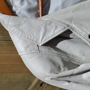 VINTAGE RETRO AVANTI LEATHER MOTO BOMBER JACKET GREY WITH PEARL SIZE SMALL