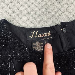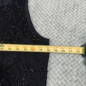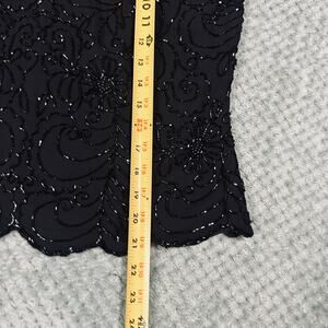 VINTAGE RETRO BLACK HEAVILY BEADED HIGH NECK SCALLOPED TANK TOP WMNS L