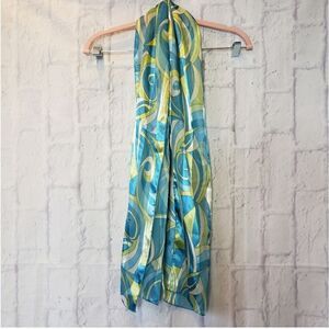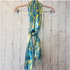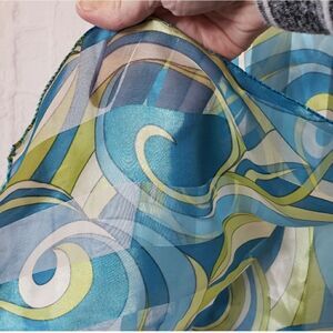 VINTAGE RETRO GROOVY Semi-Sheer Scarf Blue Lime Yellow