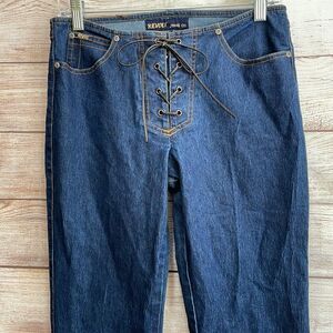 EXCELLENT CONDITION VINTAGE REVOLT FLARE LEG JEANS WITH LACE-UP FRONT