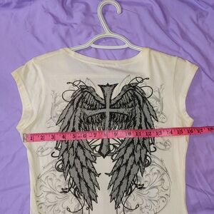VINTAGE RHINESTONE CROSS & WINGS SLEEVELESS SHIRT * SIZE L