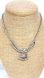 Gorgeous vintage rhinestone necklace featuring a double-row draped design with a sparkling geometric fan drop centerpiece. The stones are clear and beautifully faceted, catching the light with every movement. Set in silver-tone metal for a classic Art Deco-inspired silhouette that’s both timeless and elegant. Measures approximately 16” around the neck with secure fold-over clasp. Great vintage condition with light patina, very light darkening of some of the rhinestone and mild age wear throughout, but does not detract from wear or the beauty of this dazzling statement necklace (see photos for details). Perfect for bridal, evening, or vintage-glam styling.