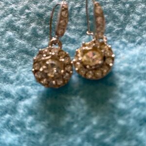 VINTAGE Rhinestone silver tone flower cluster vintage drop style wire pierced earrings. Add a touch of elegance with these stunning silver tone and rhinestone earrings. Perfect for any occasion.