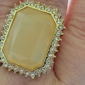 Super vintage large amber jewel with Cubic Zerconia diamonds ring custume