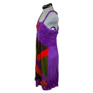VINTAGE RISING INTERNATIONAL Large Purple Mini Dress Patchwork Slinky Y2k Hippie