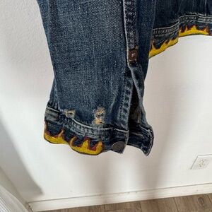 This pre-owned men's jacket is a rare vintage find from Ralph Lauren's Denim & Supply line. The jacket is in a size XL and features a biker style with a unique cartoon 666 theme. Made from cotton denim material, it showcases the iconic Ralph Lauren quality and design. Perfect for collectors or fashion enthusiasts looking for a statement piece that stands out from the crowd.