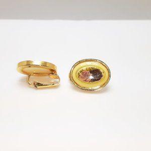 Listed is a vintage Gold Tone Rose Flower round clip-on earrings