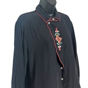 VINTAGE ROUGH RIDER CIRCLE T WESTERN RAYON BLOUSE 1980s 1990s RODEO COWGIRL SZ M