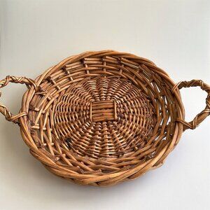 VINTAGE ROUND WOVEN BASKET WITH HANDLES