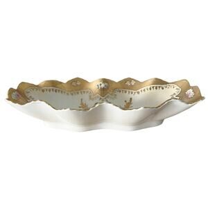 VINTAGE ROYAL CROWN Hand Painted Gold Rose Pattern Candy Dish Gold Trim 11" EUC