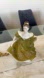 Charming porcelain figurine in olive green with white floral details. Perfect for collectors.