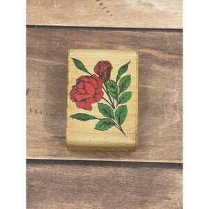 VINTAGE RUBBER STAMPEDE 503C ROSES WOOD MOUNTED RUBBER STAMP
