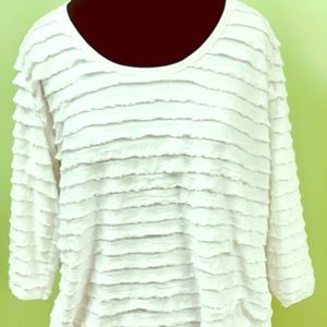 🆕 VINTAGE RUFFLED WHITE TOP. Designer label was cut out . Scoop neckline with ruffled trim. Slight unnoticeable stain as shown. Size 1X