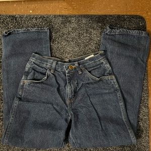 VINTAGE RUSTLER JEANS. mid rise dark wash vintage rustler jeans. really thick denim and no flaws. model is 5’3” and wears size 23/24. price negotiable. #rustler #rustlerjeans #darkwash #highrise #vintage