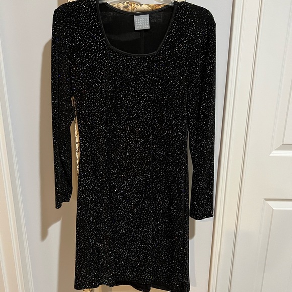 VINTAGE Rabbit Rabbit Rabbit Black Long Sleeve Sparkle Dress