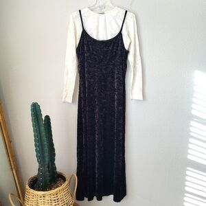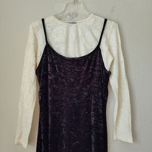 Black Crushed Velvet color dress with ivory undershirt (2 separate garments)