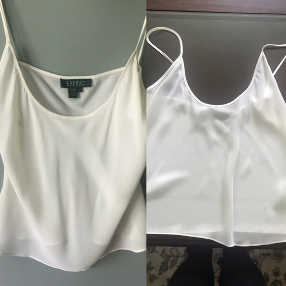 White, sheer tank. Fitting @ waist. Super cute!