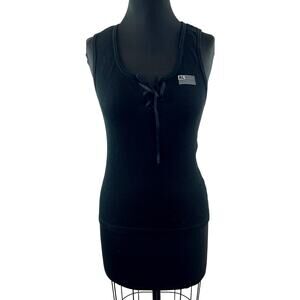 Ralph Lauren Black Tank Top Cotton Ribbed Knit Split Scoop Neck Size Large L