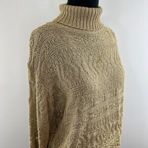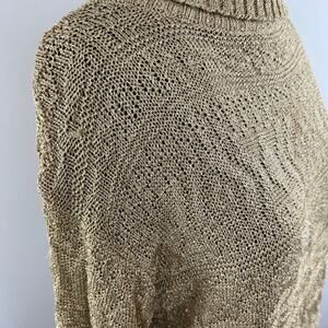 Ralph Lauren Gold Metallic Knitted Turtleneck Long Sleeve Sweater.