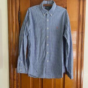 VINTAGE Ralph Lauren Custom Fit Gingham Plaid BLU/WHT Check Men's Shirt Large