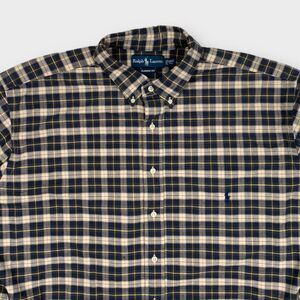 VINTAGE Ralph Lauren Shirt Mens 2XLT Tall Beige Black Check Woven Button Down