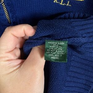 VINTAGE Ralph Lauren Women’s Quarter Zip Gold Crest Knit Sweater Navy XL