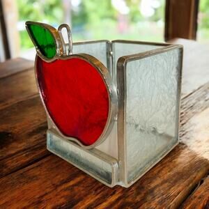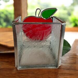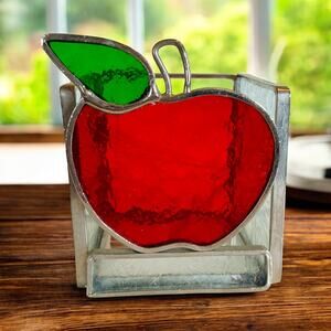 Bring a pop of vintage charm to your space with this adorable red and green glass apple holder!