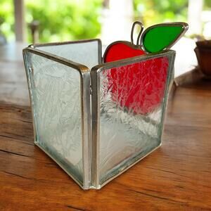 VINTAGE Red & Green Apple Glass Metal Candle Pencil Holder Teacher Office Gift