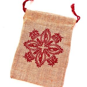 VINTAGE Red Patterned Burlap Drawstring Bag