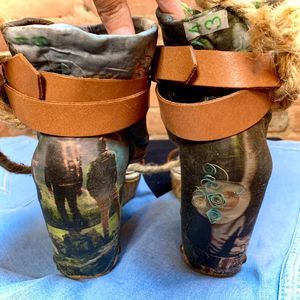 The collage differs slightly on either shoe, adding a special touch and making them truly original. Shoes are sealed and protected.