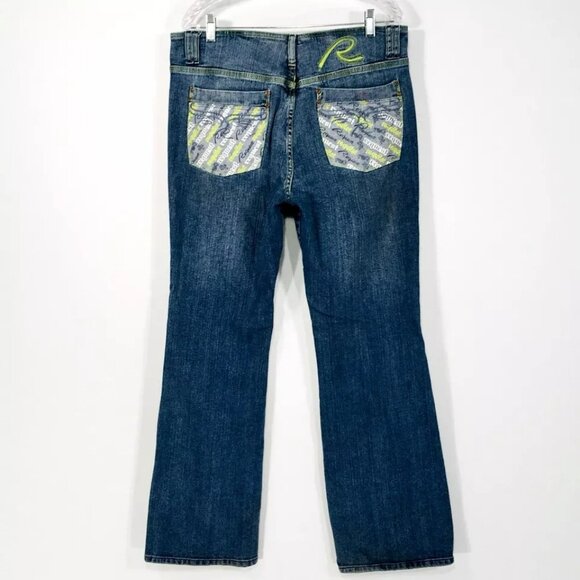 VINTAGE Request Jeans Mens 34X32 Embroidered Denim Distressed Y2K