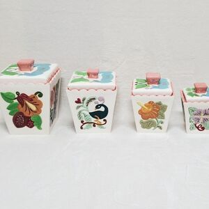 - Four Canisters, Flour, Sugar, Coffee and Tea