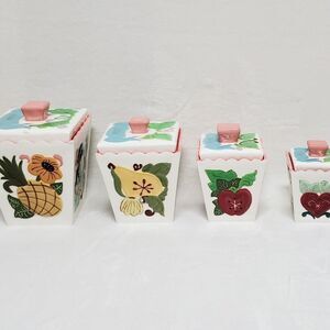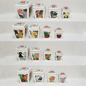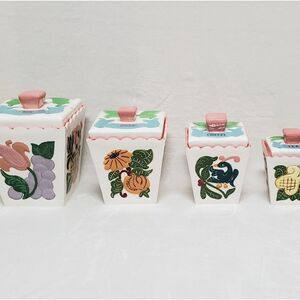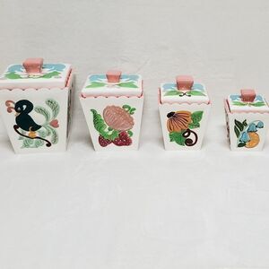 Vintage Retro 60s 1960s Kitchen, Kitchen Tools Canisters Containers Vintage Kitchen Colorful Colorful Ceramic Printed Panels Four Sided Set Fun Funky Cottagecore Cottage Core GrannyCore Modern Cottagecore 60s Boho 60s