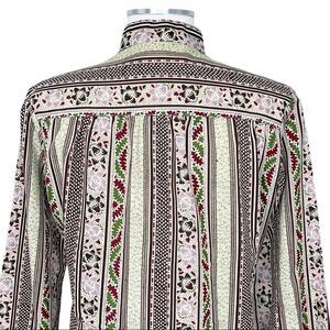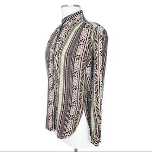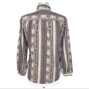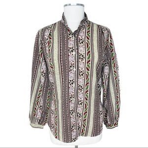 VINTAGE Retro Print Long Sleeve Button Down Top