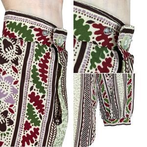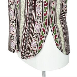Unique one of a kind top. Beautiful vintage pattern, mandarin collar can be worn buttoned or unbuttoned, button front & cuffs, split hem, puff sleeves.