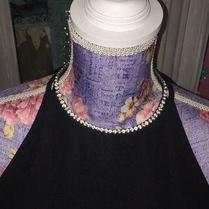 LBD with a rhinestone neck, size 4. Zippered lower back. This runs very small for a β4β and may very well be more of a size 2. By Randi May Collection. Right side of the dress has a rip at the seam. Reflected in price- all office considered.