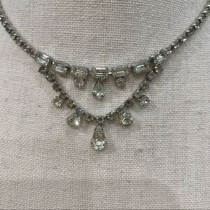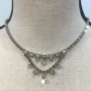 PERFECT condition, no stones missing. Features a double layer of delicate beautiful teardrop rhinestone pendants held by sparkling bezeled rectangles. The entire necklace is covered in dazzling stones!