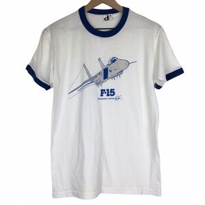 VINTAGE Ringer T Shirt 80s Graphic McDonnell Douglas F-15 Downerwear Retro XL