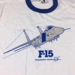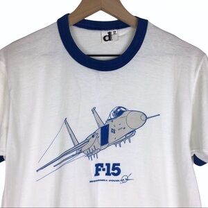 Vintage 80s Ringer Shirt Graphic T Size XL Downerwear F-15 McDonnell Douglas AirPlane Jet Aeronautical