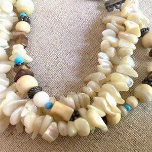 Abalone river stones with turquoise and quartz beading.