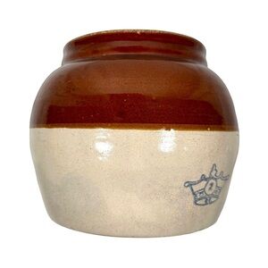 OS VINTAGE Antique Robinson Ransbottom Crown Two-Toned Stoneware Bean Pot with Handle