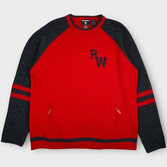 Up for sale is a Mens XXXL (3XL) Rocawear Knit Sweater Jacket. The sweater has front zip pockets, a knit RW logo at the chest, and embroidered detailing on the back.