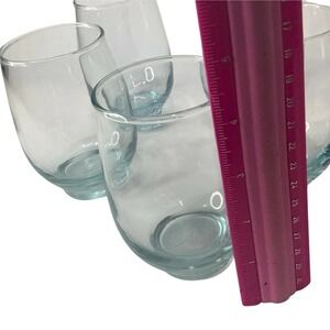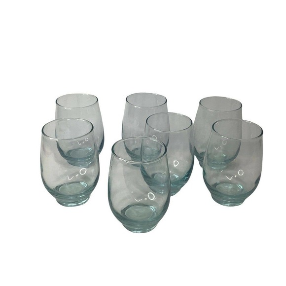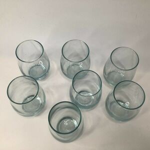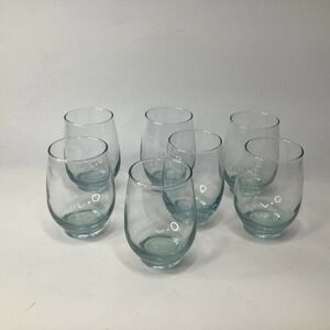 Vintage Roly Poly Libbey Tempo Juice Wine Glass Tumbler Aqua Blue Set Of 7 ‘70’s