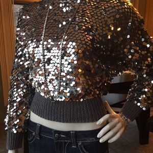 VINTAGE Ruth Chagnon silver lg sequins top Med