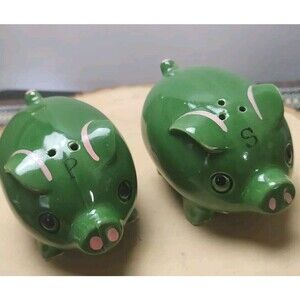 VINTAGE SALT PEPPER SHAKERS JAPAN OVERSIZED GREEN PIGS