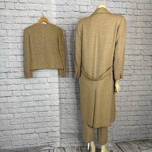 VINTAGE SALVATORE FERRAGAMO Wool & Alpace blend three piece suit in tan size s-m
