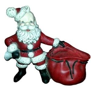 VINTAGE SANTA CLAUS WITH BAG CERAMIC HAND PAINTED DECOR