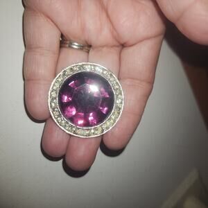 VINTAGE SARAH COVENTRY PURPLE & WHITE RHINESTONES ROUND BROOCH PIN