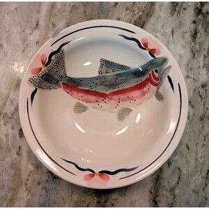 VINTAGE SARAH PETERSON RAINBOW TROUT SERVING BOWL 9” SIGNED CARLISLE HARTSTONE