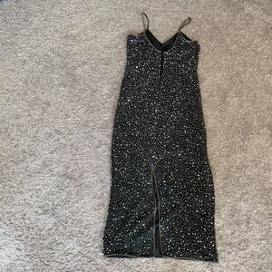 VINTAGE SCALA Black 100% Silk Beaded Sequin Maxi Gown Size Large